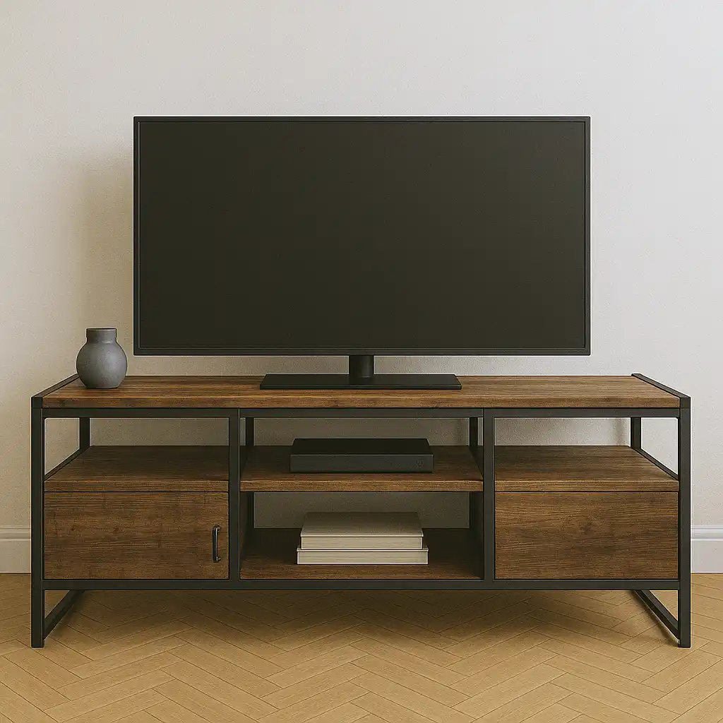 🏗️ Endüstriyel TV Ünitelerinde Siyah Metal İskelet ve Çerçeve Kullanımı